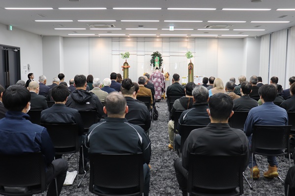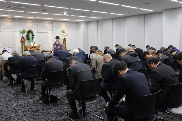 令和7年12月12日(金)林業関係者にとっての例祭である山神祭をよこてシャイニーパレスにおいて執り行いました。役職員に加え協力作業班と合同で開催し、52名が参列しました。