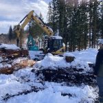 横手市増田町戸波地内のスギ搬出間伐現場と、横手市大森町地内の広葉樹の更新伐現場を視察しました。